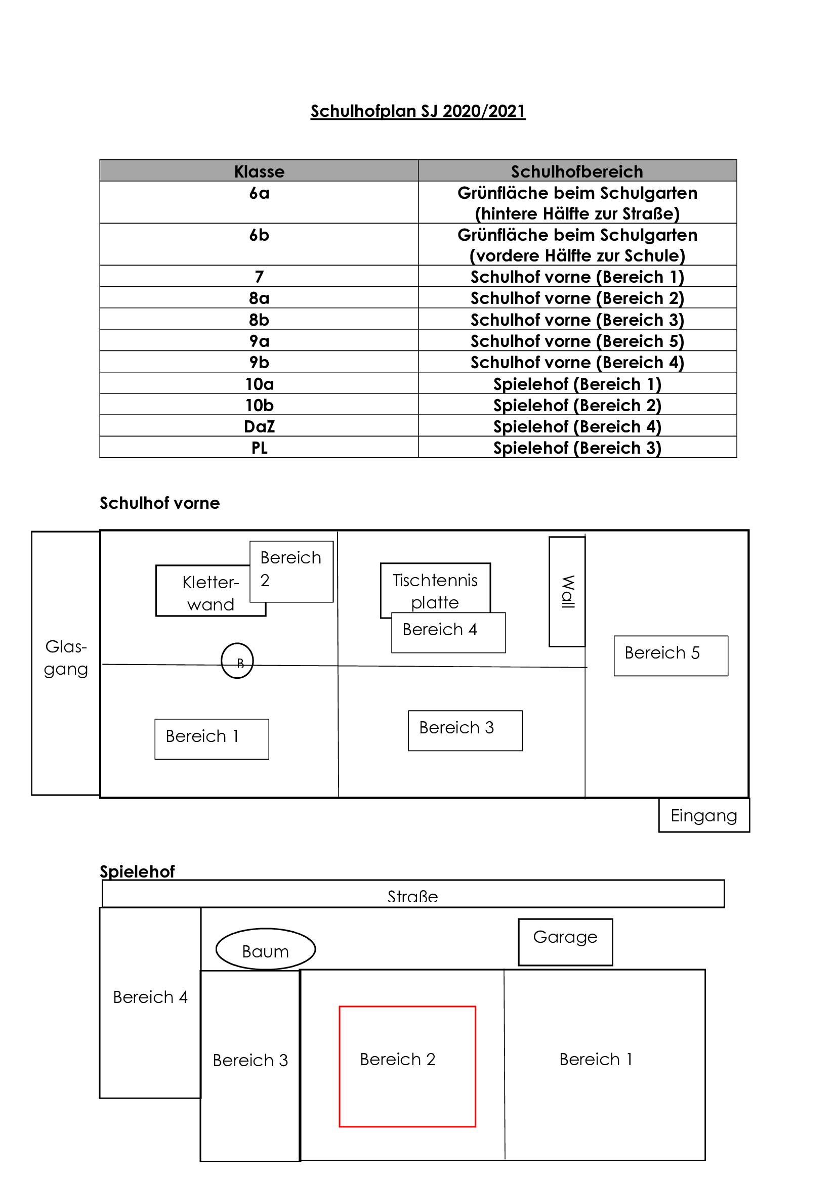 Schulhofplan Klassen 6-10, DaZ und PL
