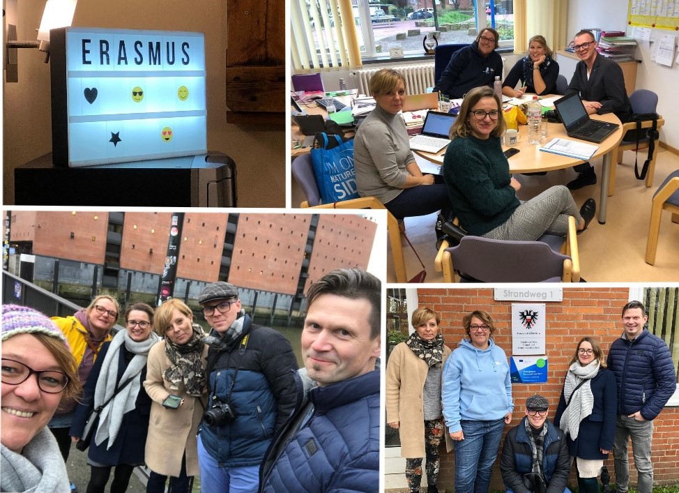 Zum ersten Planungstreffen für das Erasmus-Projekt „JOB – Jump on board“ trafen sich vom 4.-8.8. Lehrerinnen und Lehrer aus Polen und Norwegen. Der Zeitablauf des zweijährigen EU-geförderten Projektes und die Aktivitäten für Schülerschaft und Lehrkräfte wurden besprochen und im Büro von Frau Weinhold herrschte Hochbetrieb beim Planen von gegenseitigen Besuchen, gemeinsamen Projekten und dem Erstellen einer Homepage. Vor allem diente das Treffen aber auch dem gemeinsamen Kennenlernen. Die Gäste hospitierten in den unterschiedlichsten Klassenstufen und machten Werbung für das Projekt. Kein Wunder, dass viele Schülerinnen und Schüler sich schon eingetragen haben und dabei sein wollen, wenn die erste Fahrt im Frühjahr nach Polen geht. Im Herbst werden wir eine Schülergruppe bei uns zu Gast haben und im Frühjahr 2021 machen wir uns auf die lange Reise an den Polarkreis nach Norwegen. Für die SaM waren Frau Looft, Frau Profittlich und Frau Weinhold an den Vorbereitungen beteiligt. Die Gäste waren natürlich in Lübeck und Hamburg und waren sehr interessiert an der Geschichte der deutschen Teilung und des Priwalls.
