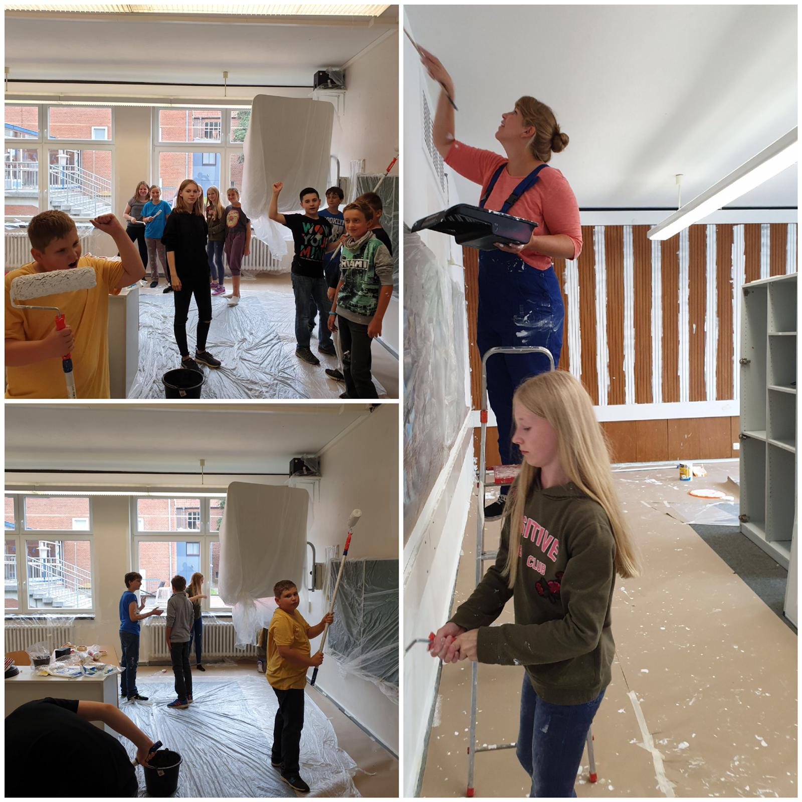 Gleich in der ersten Schulwoche ging die Klasse 7b fleißig ans Werk und gab ihrem Klassenraum einen neuen Anstrich. Das fördert den Zusammenhalt und sorgt für ein wohliges Arbeitsklima im neuen Schuljahr. Dieses Projekt zum Schuljahresbeginn finden wir super!