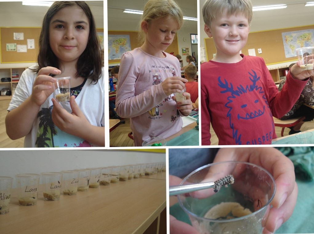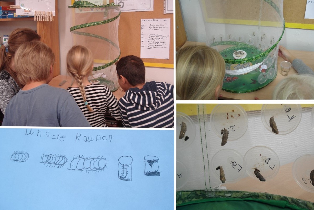 In Klasse 2 haben sich bereits alle Raupen verpuppt. Seit heute befinden sich die Puppen in einem großen Beobachtungsnetz. Gespannt warten wir nun auf uneren ersten Schmetterling. Vielleicht werden wir in dieser Woche noch die ersten Distelfalter beobachten können?