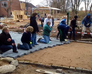 Am vergangenen Samstag lief es rund auf dem neuen Schulhof. Engagierte Eltern arbeiteten gemeinsam mit Kolleginnen und Kollegen an der Gestaltung des Geländes. Es wurden Berge von Erde verlagert, Pfllastersteine gelegt, Pflanzen gesetzt und verschiedene andere Arbeiten erledigt. Alle Aktiven konnten so am Ende des langen Tages stolz auf ihr Tageswerk blicken. Für das leibliche Wohl wurde unter anderem durch das Ristorante "Casablanca" aus Travemünde gesorgt. Auch an dieser Stelle noch einmal ein großes Dankeschön an alle Wegbereiter, Bergversetzer und Kaffeekocher. Wer viel arbeitet darf auch feiern! Am 22.11.2013 um 14.30 Uhr weihen wir deshalb den ersten Bauabschnitt offiziell ein und freuen uns über zahlreiche Gäste.